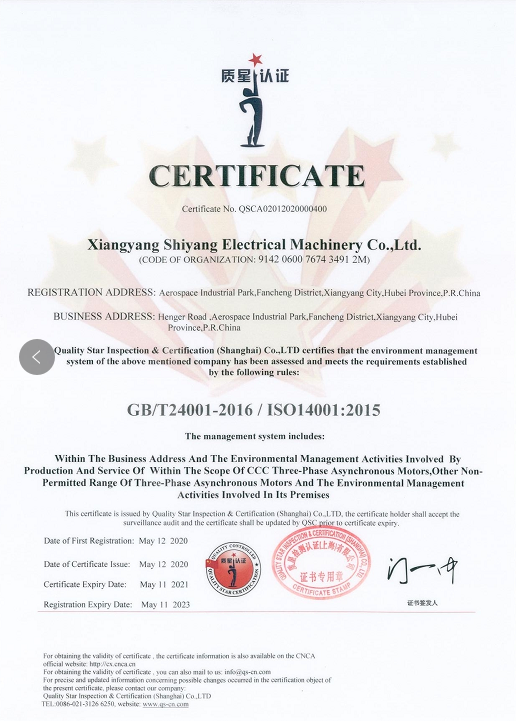 環(huán)境管理體系認(rèn)證證書